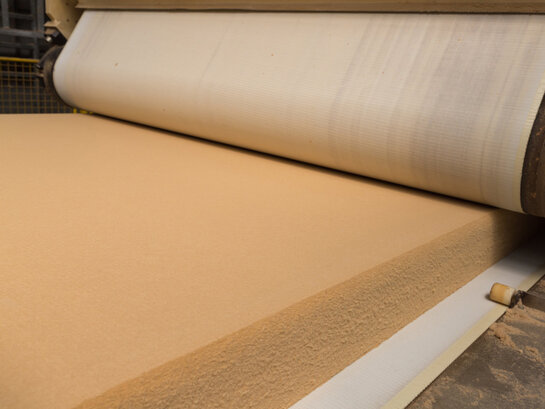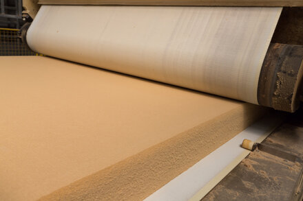 Producimos placas aislantes homogéneas (monocapa) de fibra de madera con un grosor de 20 a 240 mm, una densidad bruta de 110 a 210 kg/m3 y una difusión de vapor (µ) de 3 mediante el procedimiento en seco.