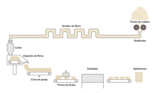 Este proceso nos permite producir fibras sopladas con una densidad bruta de unos 28 kg/m³ y una difusión de vapor (µ) de 1-2.