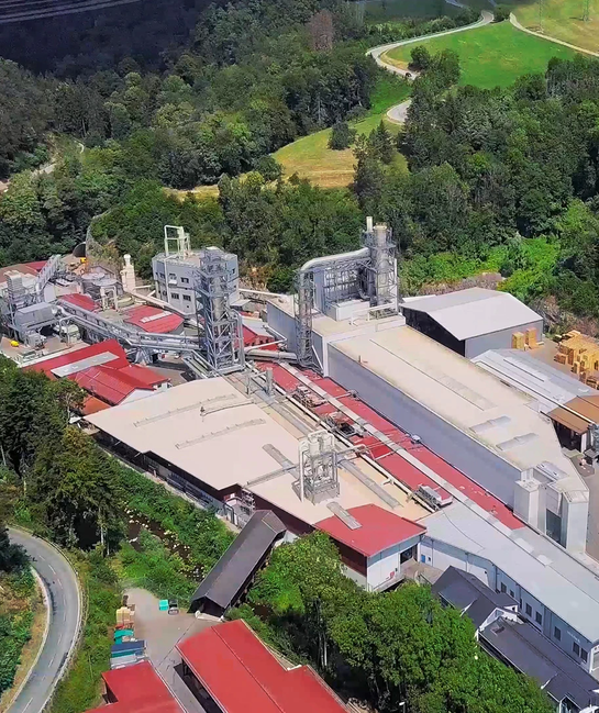 Sólo utilizamos madera de coníferas certificada, que es un subproducto de los aserraderos y empresas forestales regionales, principalmente en forma de astillas, que nos llegan a través de rutas de suministro cortas.