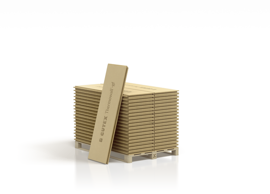 Gutex Thermowall-gf es la placa aislante más pesada de la gama Thermowall ETICS, que ofrece la máxima estabilidad y resistencia a la compresión incluso en espesores de 40 y 60 mm, ideal para el revestimiento directo de montantes de madera. También es adecuada para paredes macizas de madera o mampostería. Con una conductividad térmica de λD 0,043 y λB 0,045 W/mK y una excelente capacidad de almacenamiento térmico, Thermowall-gf reduce las necesidades energéticas y evita la formación de algas en la fachada revocada. Además, la placa aislante de fibra de madera, permeable al vapor y reguladora de la humedad, garantiza un clima interior saludable y un mejor aislamiento acústico.