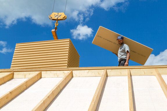 Paneles de subtecho Gutex Ultratherm yGutex Multiplex-toppueden estar expuestos a la intemperie hasta tres meses.